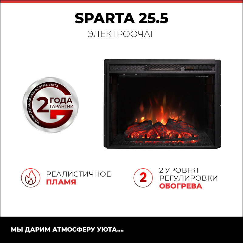 - Безопасность работы очага обеспечивается двойной электрической изоляцией и встроенной защитой от перегрева.