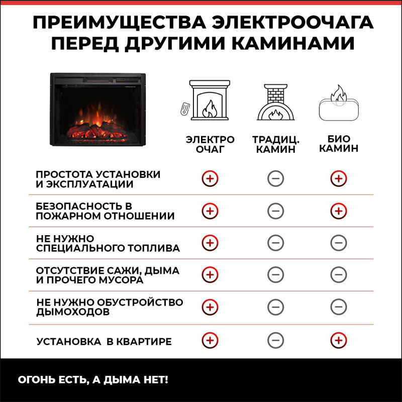 | Особенности | термостат, регулировка яркости пламени, пульт д/у в комплекте |