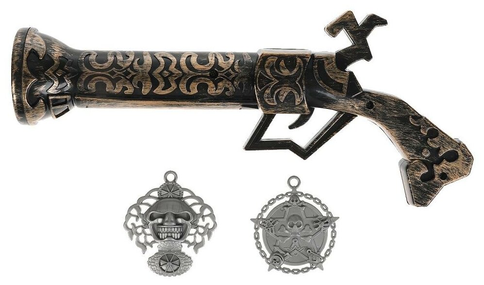 С этим игровым оружием ваш ребёнок будет придумывать увлекательные приключения, искать сокровища и бороздить морские просторы. С таким оружием маленький пират станет самым метким стрелком. Набор подойдёт для активных игр на воздухе и в помещении.
