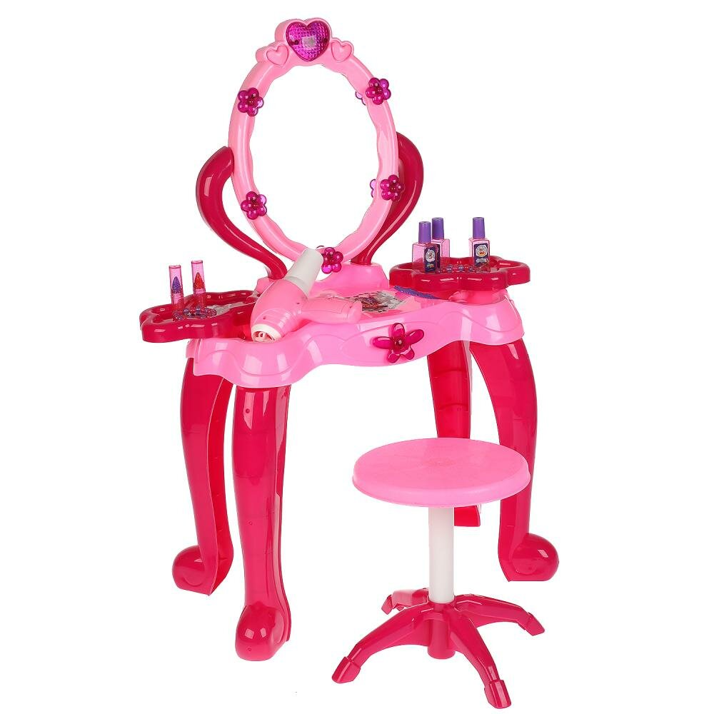 Набор украсит комнату малышки и подарит массу незабываемых впечатлений. Небольшой столик на ножках дополнен волшебным зеркалом. На столике удобно размещаются аксессуары. С таким набором маленькая принцесса сделает себе прекрасную причёску и макияж. Она будет неотразимой на любом празднике.