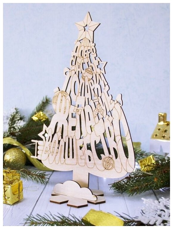 Оригинальная новогодняя елочка на подставке украсит Ваш интерьер и подарит праздничное настроение. Елку можно раскрасить на свой вкус. Встречайте Новый год экологично! Размер: 295 мм.