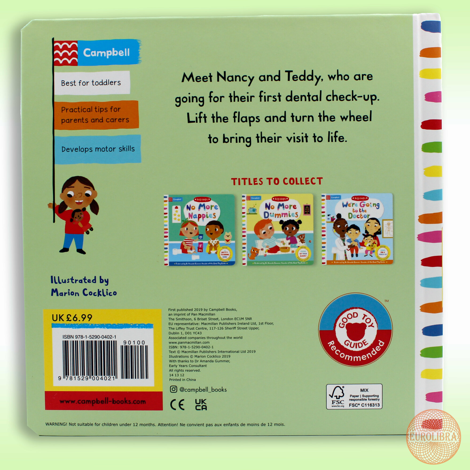 Explore the waiting room, sit in the dentist's chair and learn about how to brush your teeth in this sweet story, brought to life with fun flaps and mechanisms. Each page has really helpful tips for parents and carers that are endorsed by The Good Play Guide and leading Early Years Consultant, Dr Amanda Gummer. With delightful illustrations from Marion Cocklico, We're Going to the Dentist is a brilliant way to prepare children for a dental check-up in a fun and relatable way.