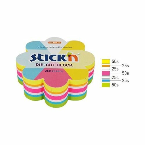 Блок для записей Цветок самоклеящийся 250 листов микс неоновых цветов STICK'N