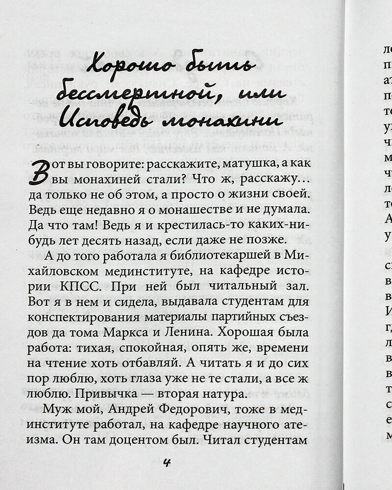 Замечательная и прекрасная книга монахини Евфимии (Пащенко) не даёт оторваться! Каждый рассказ осмысливаешь и возвращаешься вновь! Читается на одном дыхании! Замечательные рассказы, порою доводящие до слёз! Книга напечатана на отличной бумаге и в твёрдом переплёте! В конце каждого рассказа даны примечания, с указанием источников.. Прочитал книгу с огромным удовольствием!