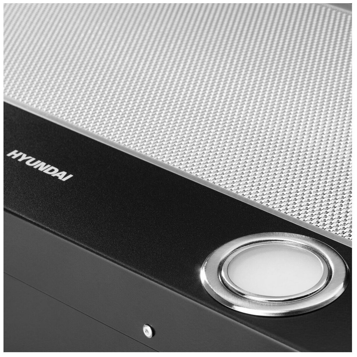 Встраиваемая вытяжка Hyundai нержавеющая сталь/черный, количество двигателей: 1, режим работы: отвод/циркуляция, кнопочное управление, алюминиевый жироулавливающий фильтр