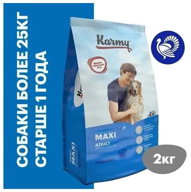 Сухой корм для собак Karmy с индейкой для крупных пород 14 кг Adult Dog Maxi для взрослых собак крупных пород с индейкой