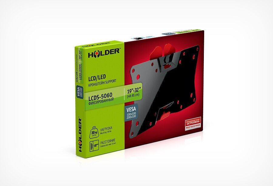 Кронштейн Holder черный для ЖК ТВ 19-32" настенный от стены 18мм наклон 5° VESA 200x100 до 30 кг