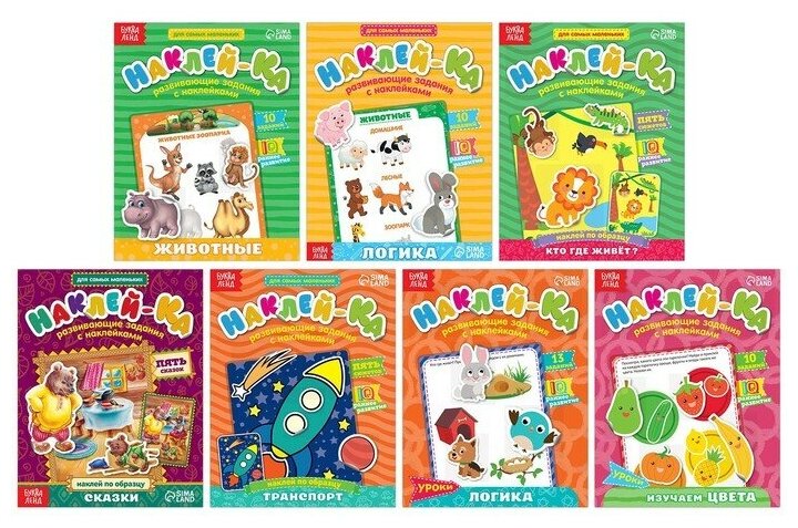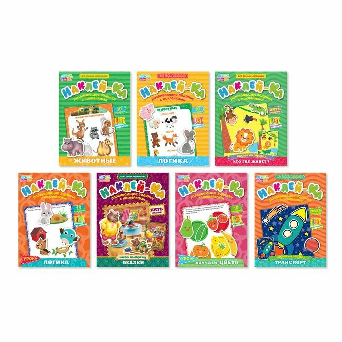 Набор развивающих книг "Наклей-ка". Комплект из 7 книг (Юлия Сергеевна Соколова); Буква-ленд, 2019