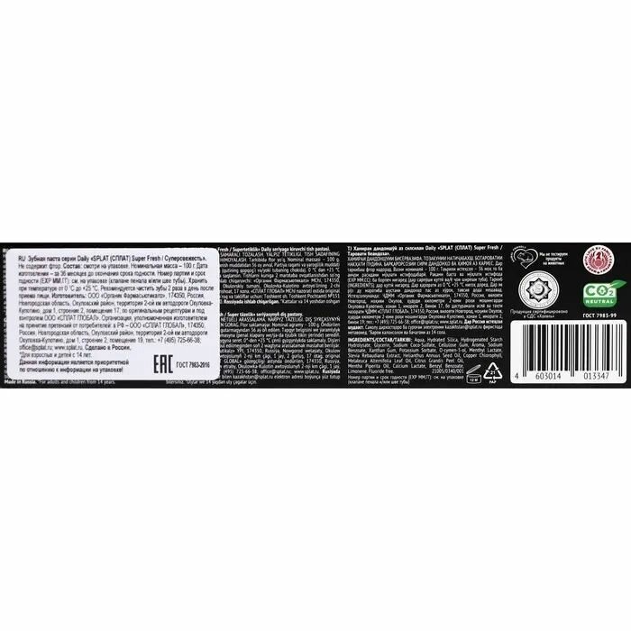 Сервис сравнения цен СкидкаГИД предлагает сравнить цены на товар «Зубная паста Splat Daily Super Fresh 100г Органик Фармасьютикалз»