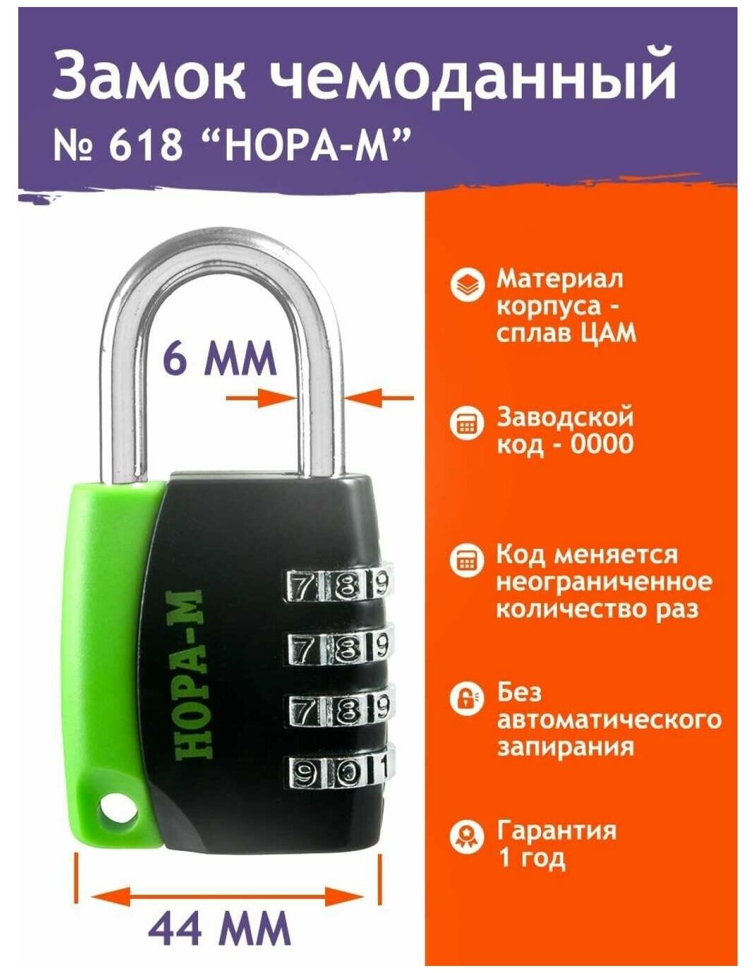 - Замок навесной кодовый 618 "НОРА-М", цвет - черный