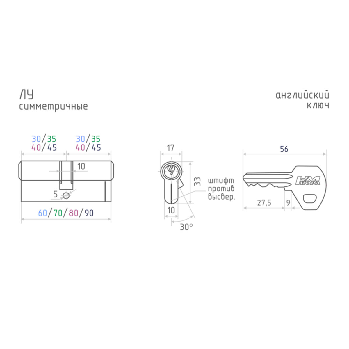 Цилиндр НОРА-М ЛУ-60 латунь 30-30