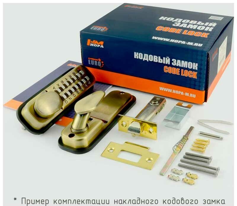 Накладной кодовый механический замок предназначен для установки на межкомнатные двери толщиной 35-55мм. Используется для ограничения доступа в помещение. При закрытии двери автоматически переходит в режим охраны (данную функцию можно отключить кнопкой фиксатора). Запертая дверь изнутри открывается поворотом ручки. Код можно набирать в любой последовательности. Кодовую комбинацию можно сменить, упростить или усложнить в зависимости от необходимости, для этого в комплекте с замком поставляются дополнительные пины (как кодовые, так и не кодовые). Обращаем ваше внимание на то, что данный замок не предназначен для установки на уличные двери или калитки. Гарантия на работу замка 5 лет.