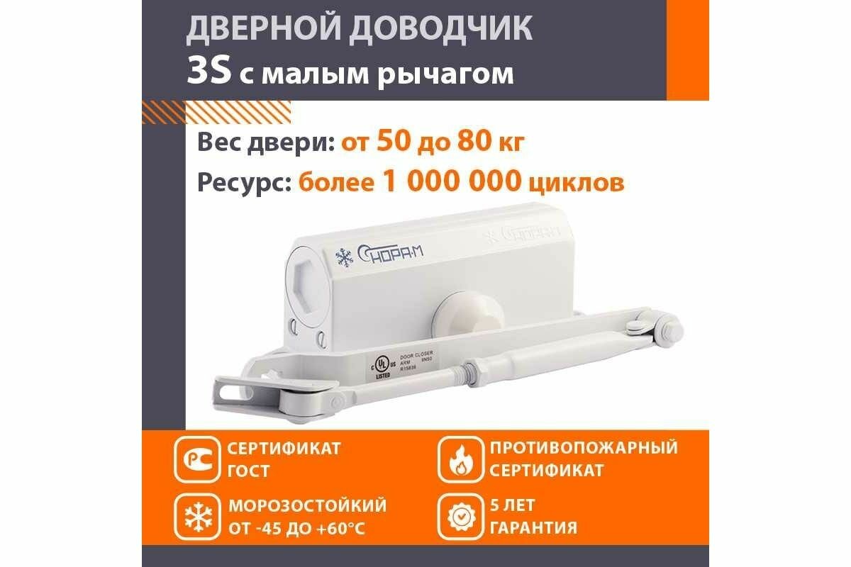 Доводчик дверной НОРА-М № 3S мал. белый 50-80 кг