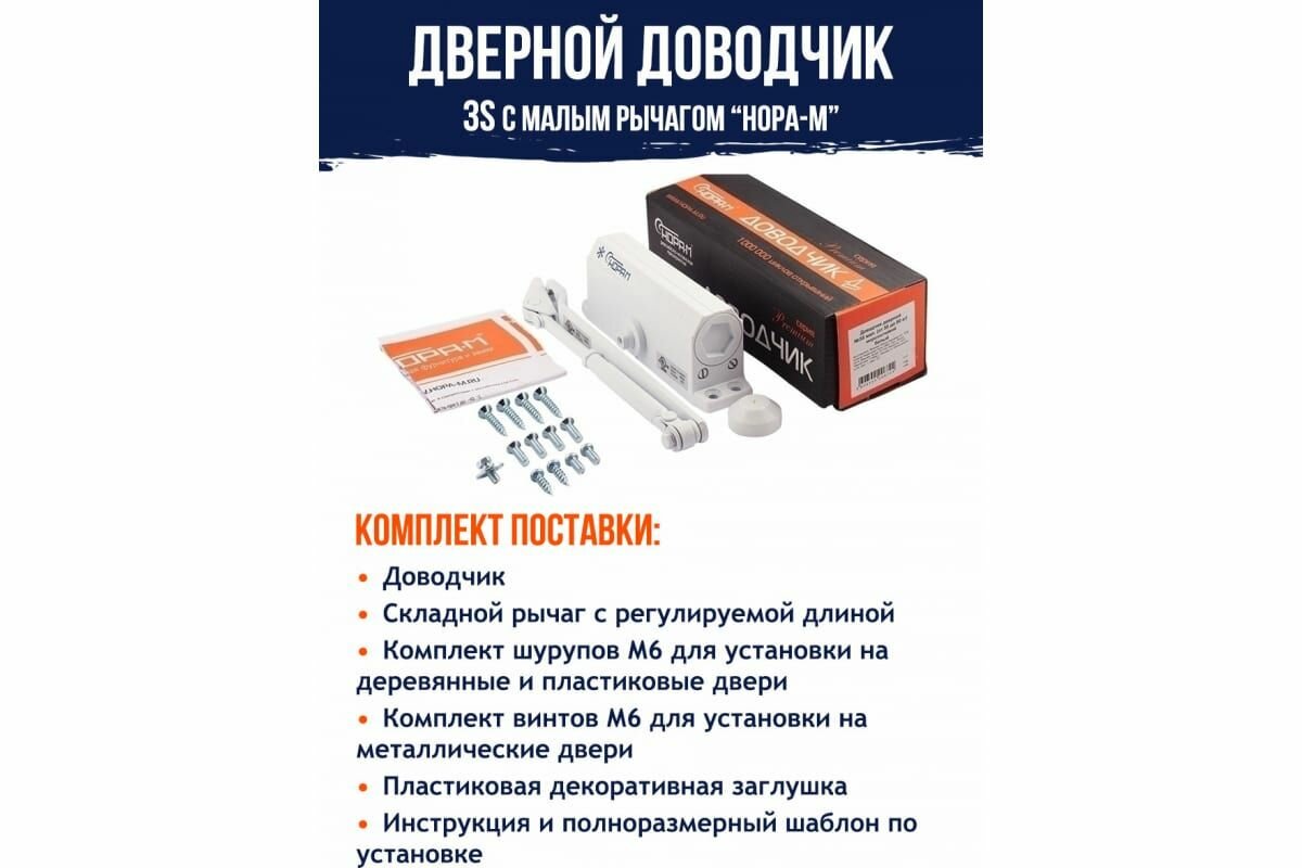 Сервис сравнения цен СкидкаГИД предлагает сравнить цены на товар «Доводчик дверной НОРА-М № 3S мал. белый 50-80 кг»