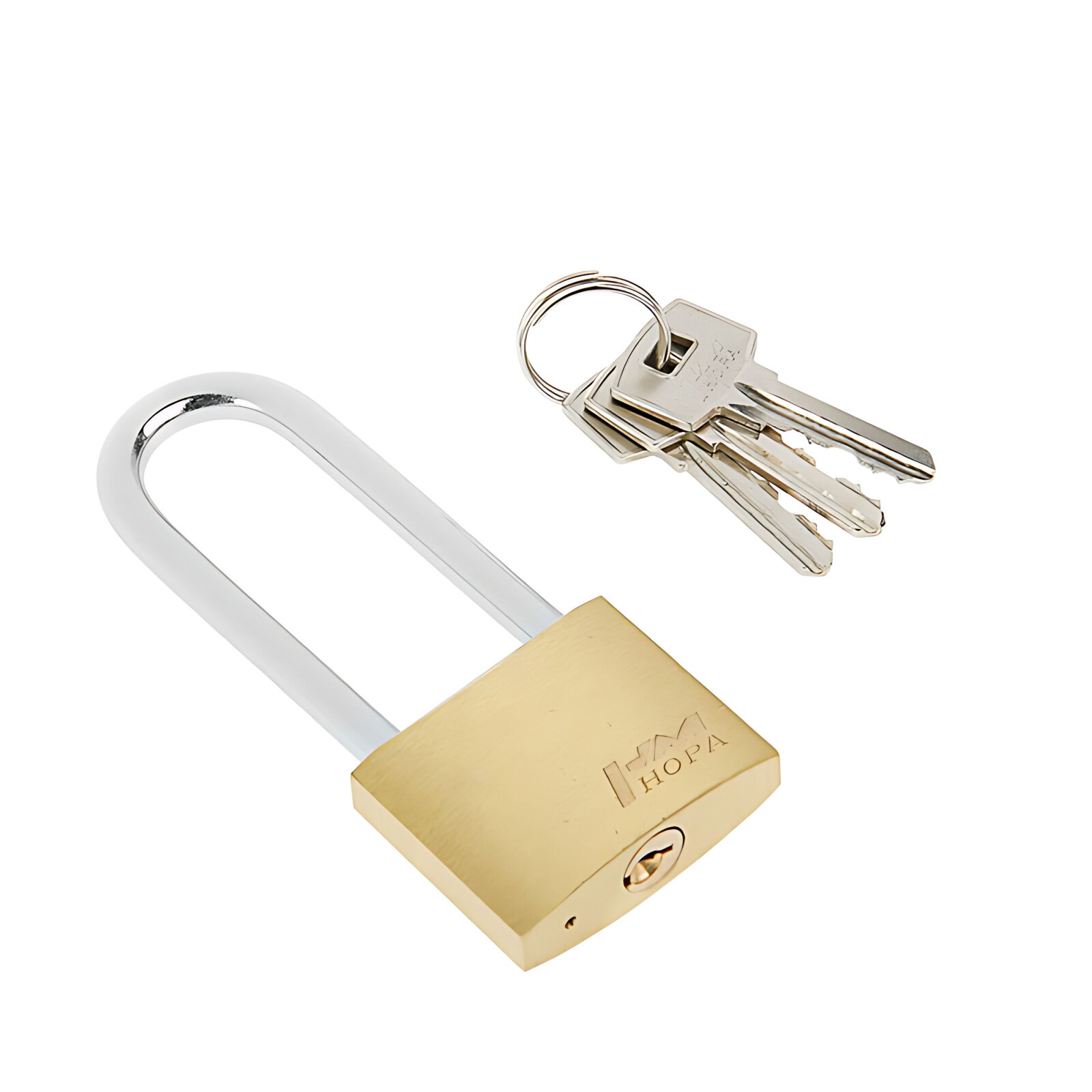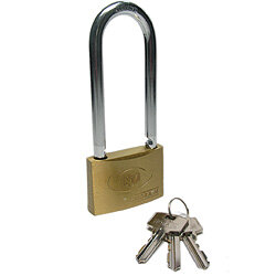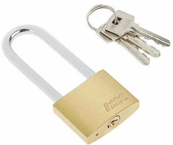Навесной замок общехозяйственного назначения. Материал корпуса и цилиндра - латунь, дужка сделана из закаленной стали, в комплекте 3 стальных ключа. Для удобства в использовании дужка имеет удлиненную форму. Замок автоматически запирается без использования ключа. В процессе эксплуатации рекомендуем смазывать замок дужки и цилиндр графитовой или силиконовой смазкой. Гарантия на работу - 5 лет.