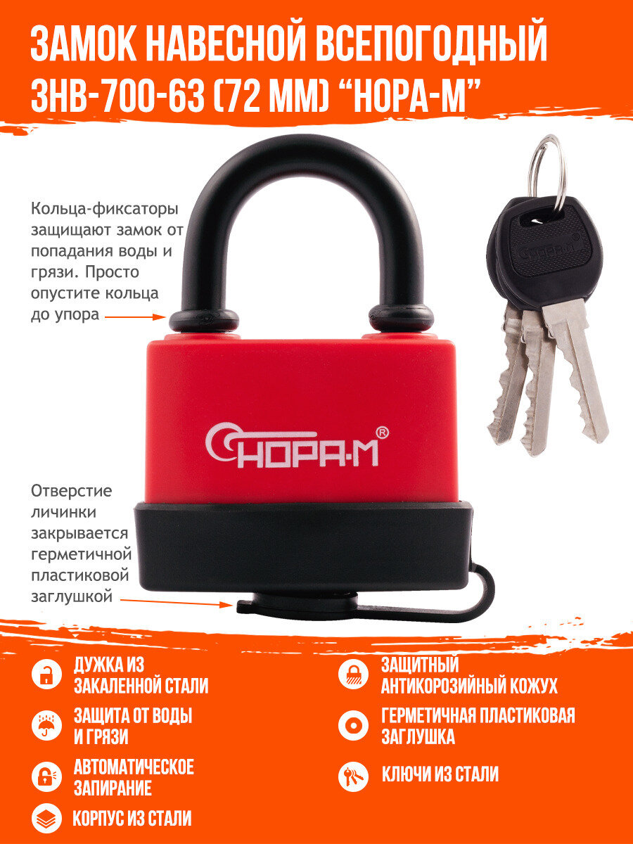 Сервис сравнения цен СкидкаГИД предлагает сравнить цены на товар «Замок навесной НОРА-М ЗНВ-700-63 мм красный»