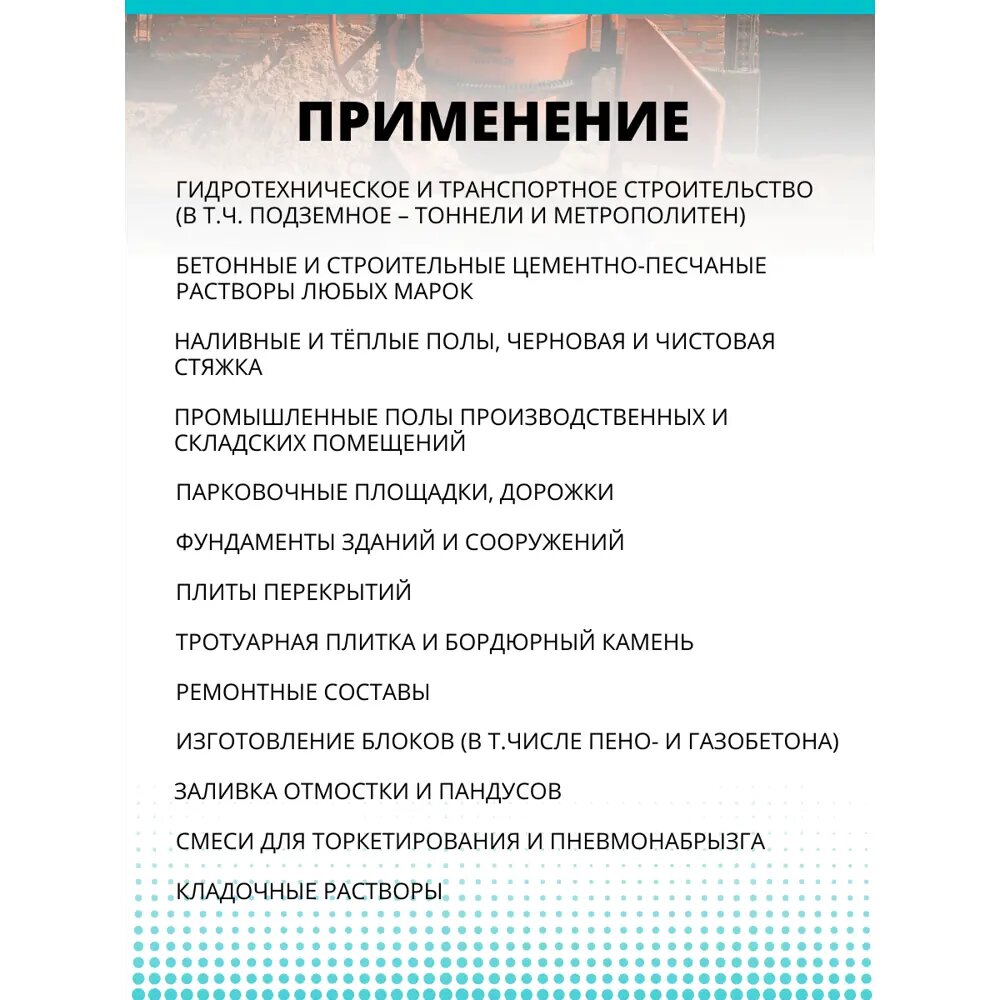 | Дозировка | 1 кг на 1 м3 строительного раствора или бетона |