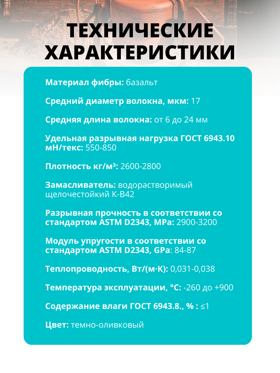 - Повышает устойчивость к истиранию бетонных конструкций (с базальтовой фиброй повышается на 40-60%)