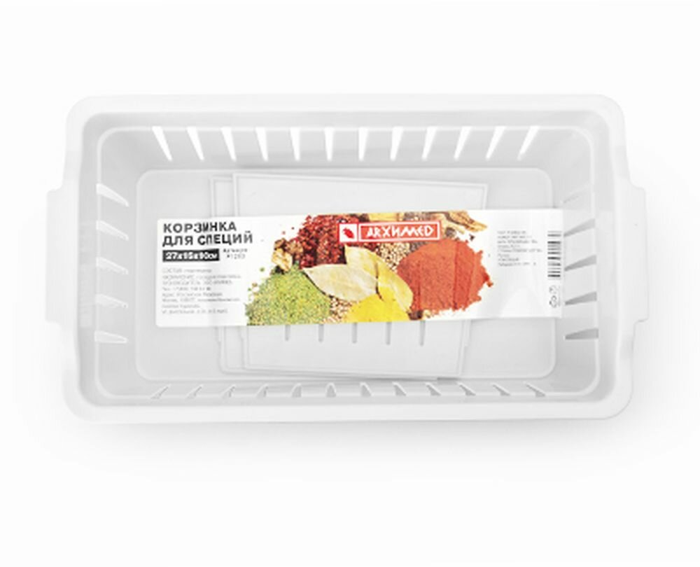 Корзинка пластиковая для специй АРХИМЕД 27х15х10 см белый Без бренда
