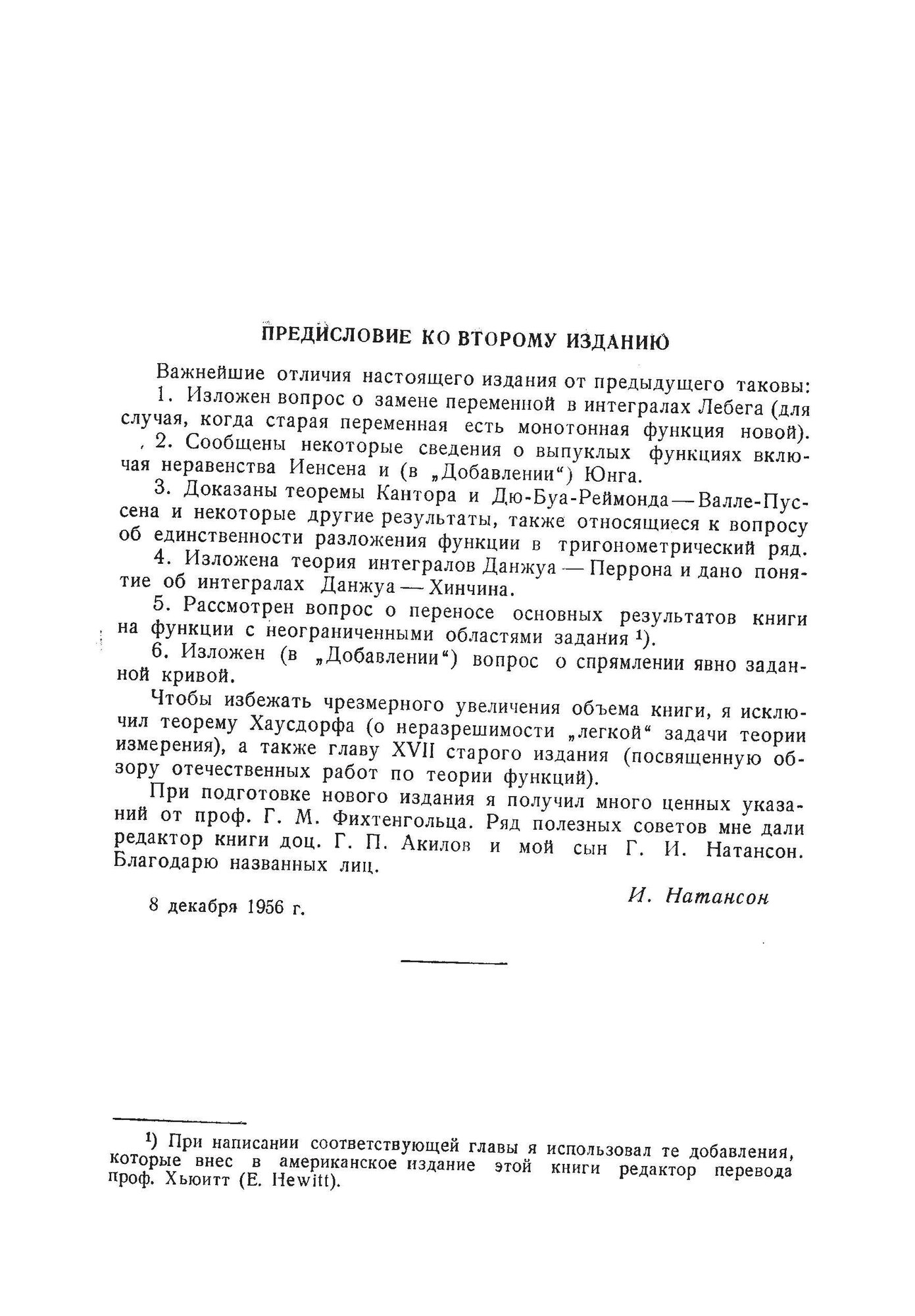 В учебнике известного советского математика И. П. Натансона рассмотрены измеримые множества и функции (одной и нескольких переменных); интеграл Лебега и его обобщения; суммируемые функции; интеграл Стилтьеса; абсолютно непрерывные функции; сингулярные интегралы; функции с неограниченными областями задания. Книга соответствует учебным программам университетов. Включены (петитом) ряд вопросов, выходящих за пределы программы. Отличительная особенность учебника - ясность и общедоступность даже самых сложных рассуждений. Приведено большое количество упражнений, в том числе весьма трудных.