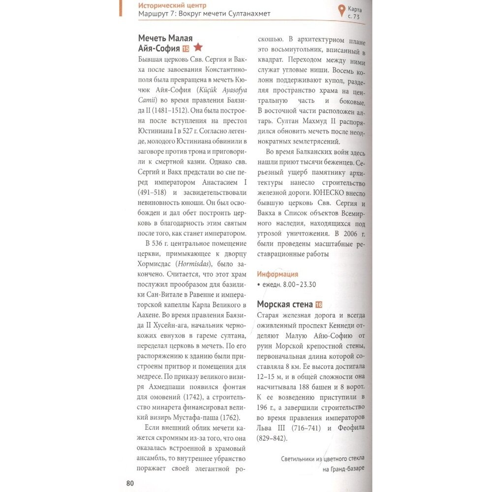 Отличный путеводитель! Очень понравилось описание основных исторических объектов, плюс еще всякие интересные факты о них. Имея этот путеводитель, можно еще взять на месте аудио гида и вам 100% не придется тратиться на экскурсовода - информации предостаточно! Гуляя по Айя-София, не брали даже аудиогид и без проблем нашли все исторические предметы, фрески и т.д. Очень понравились карты (по районам) - подробно все расписано, даже не покупали карту отдельно, т.к. здесь можно найти все, в т.ч. и...