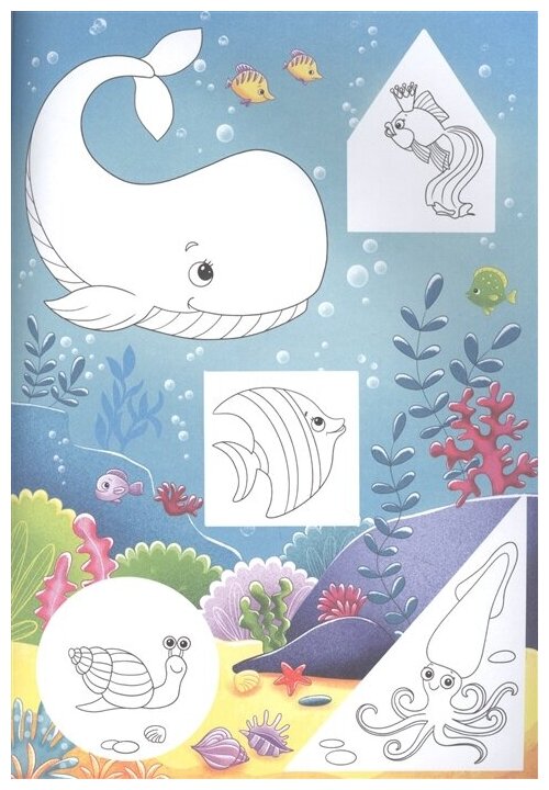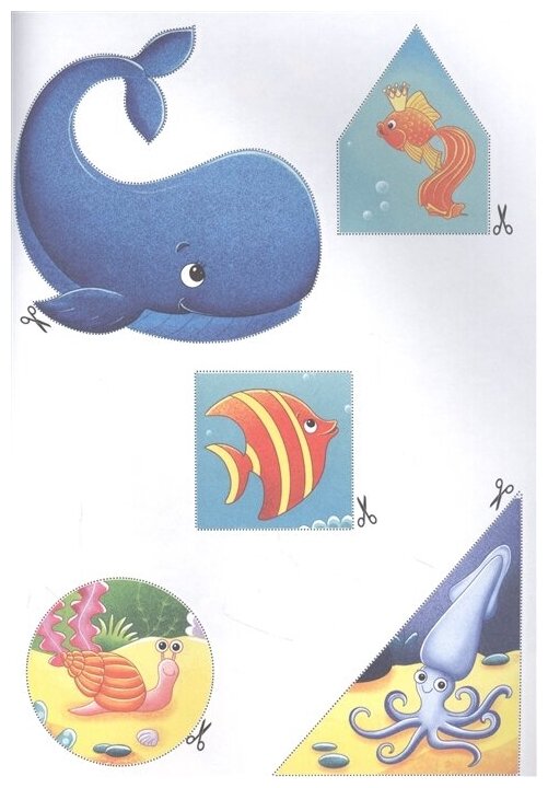 Возьмите ножницы и клей – и творите в удовольствие! В серию «Вырежи и наклей» вошли четыре брошюры: «В лесу», «Транспорт», «Домашние животные», «Подводный мир». В каждой – по четыре тематические картины, которые ребенок дополнит деталями, вырезанными самостоятельно, – они вынесены на отдельные страницы. Таким образом, из его рук выйдет новая яркая книжка!