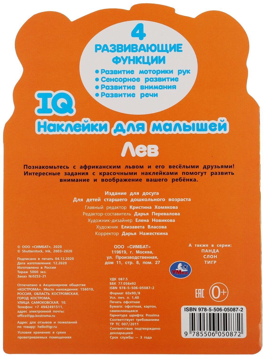 Наклейки-iq для малышей Лев 8 стр. с вырубкой бумага мелованная УМка 210х285мм Кострома АО (1683978)