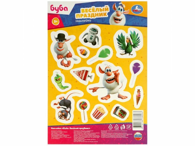 Наклейки «Буба. Весёлый праздник» ТМ «УМка» непременно понравятся маленьким поклонникам мультсериала о забавном домовом: