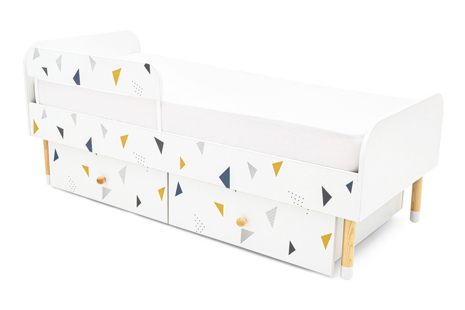Деревянная кровать Stumpa Классика с бортиком Бельмарко "Треугольники зеленый синий" Hoff Stumpa Классика Треугольники
