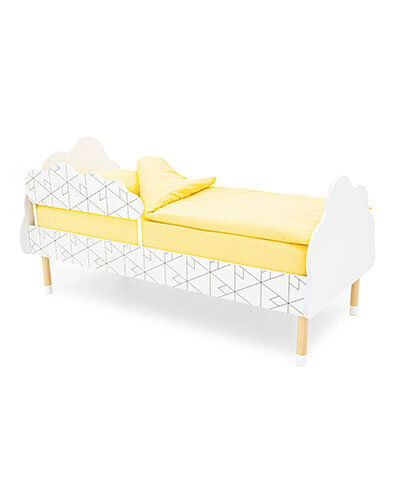 Кровать Stumpa Облако с оригинальной фотопечатью станет уютным и любимым местом для сна мальчика или девочки от 2 до 10-12 лет.Материалы.Кровать изготовлена из ЛДСП класса Е1, а ножки изготовлены из массива сосны, отшлифованы и покрыты лаком на водной основе. Эти материалы обладают высокой прочностью, долговечностью, просты в уходе.На поверхность нанесен оригинальный рисунок ультрафиолетовыми высококачественными чернилами. Рисунок, нанесенный с помощью фотопечати устойчив к истиранию. Все материалы экологичны и безопасны.Конструкция.Изголовье и изножье кроватки сделаны в виде облака. Высота от пола до самого высокого места составляет 66 см. Это позволяет даже маленькому ребенку комфортно забираться и спускаться с нее, не рискуя упасть. Специальная конструкция кровати позволяет с лёгкостью присесть или прилечь рядом взрослому, если ребенок не может заснуть.Предусмотрено ортопедическое основание под матрас, состоящее из 12 лат, эта специальная конструкция легко выдерживает вес до 200 кг.Для обеспечения дополнительной безопасности малыша во время сна есть съемный бортик. Особенность его в том, что он закрывает кровать не по всей длине, а только ее часть, благодаря такому конструктиву, ребёнок легко сможет сам забираться на свое спальное место.Для удобства хранения игрушек или постельных принадлежностей, вы можете приобрести еще вместительные ящики, которые устанавливаются под основание кровати. Многообразие фотопечати фасадов ящика позволяет скомплектовать разные варианты.Особые свойства.Кровать выполнена в лаконичном скандинавском стиле, который очень популярен сейчас в интерьере и соответствует духу серии «Stumpa» в целом. Милые рисунки оживят кроватку и подойдут к любой цветовой гамме в детской комнате.Сборка очень простая и осуществляется самостоятельно.Комплект кровати состоит из каркаса кровати, ортопедического основания и бортика. Бортик, ящики, матрас и постельные принадлежности приобретаются отдельно.