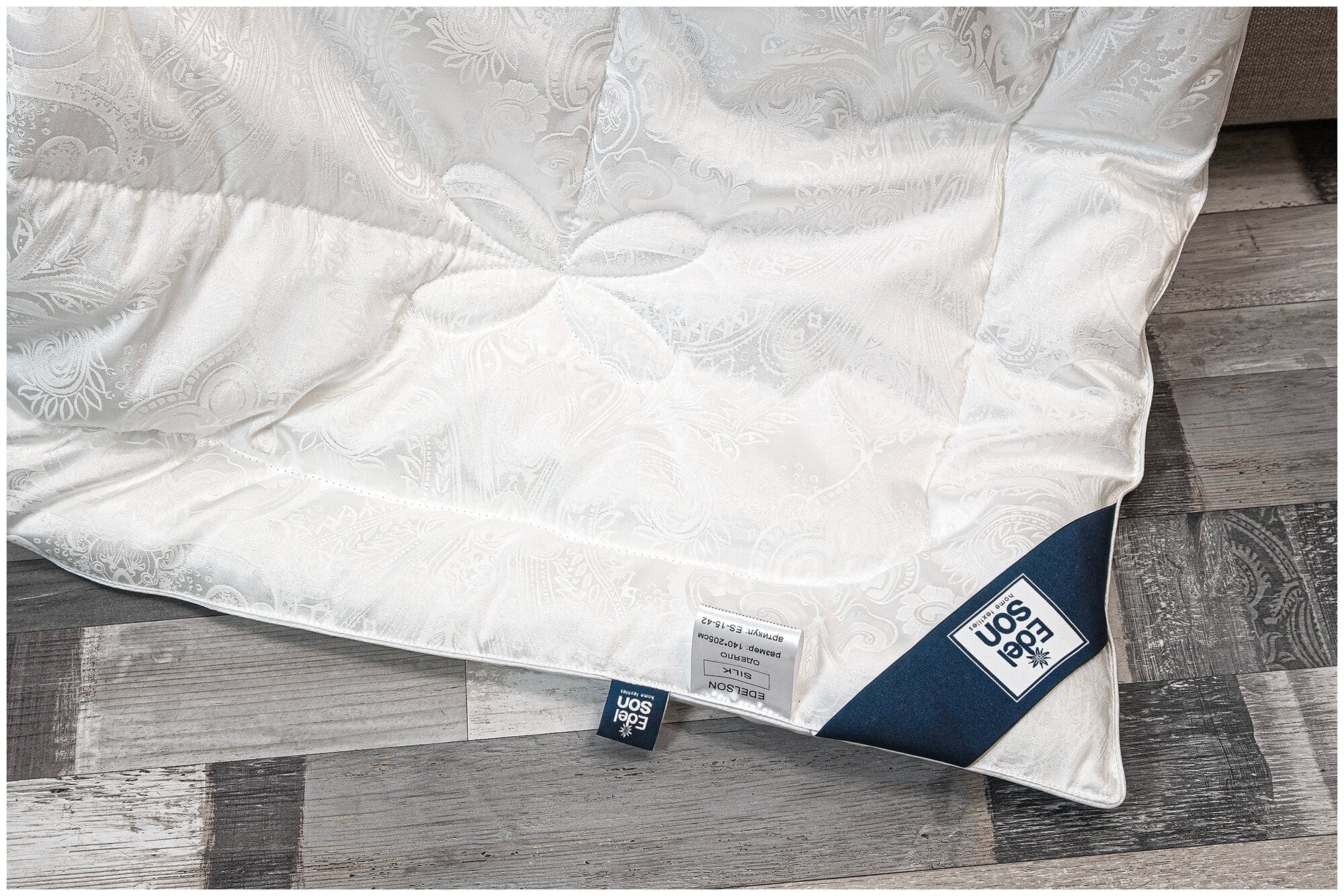 В коллекции "SILK" представлено всесезонное стеганое одеяло, в чехле из белого полиэстра с легким цветочным рисунком, вторая сторона - хлопок. В качестве наполнителя используется шелк и силиконизированное полиэфирное микроволокно. Одеяла с шелковым наполнителем не способствуют перегреву и не дают замерзнуть зимой. Под ними не потеют, так как они отлично пропускают воздух и отводят влагу. Кроме того шелковое волокно очень прочное и долговечное. Рекомендуем деликатную стирку при 30С. Идеальное качество, шарм и очарование собраны в коллекции "SILK".