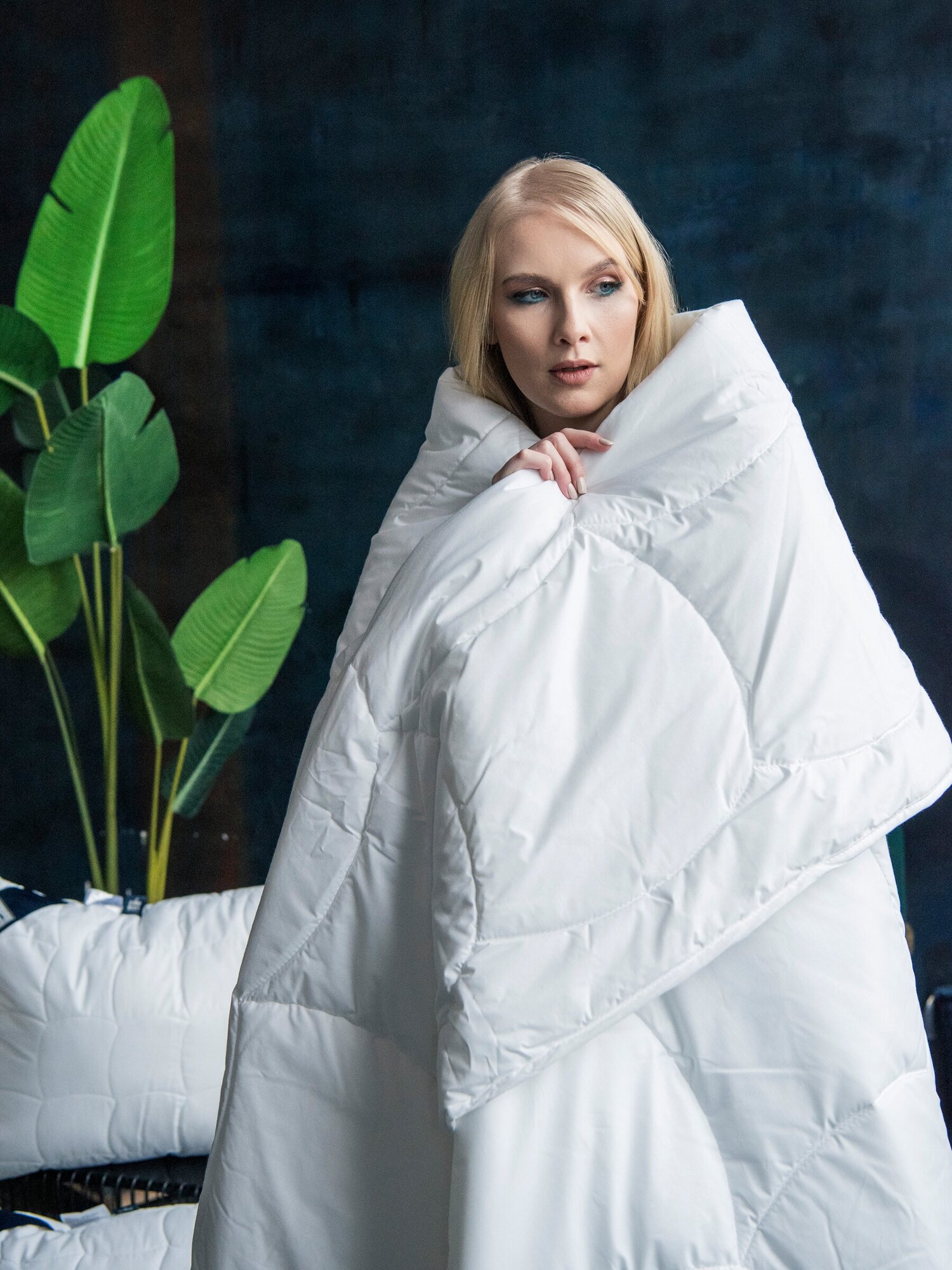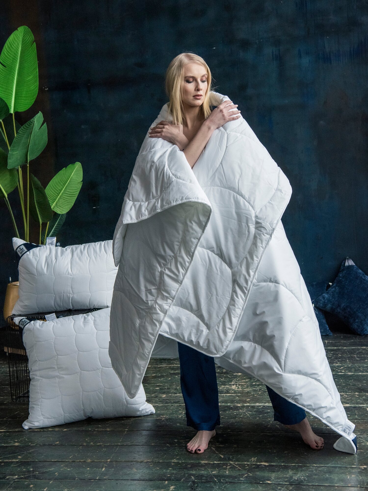 В коллекции "" представлено всесезонное стеганое одеяло в чехле из белого перкаля (100% хлопок). Спальные принадлежности в чехлах из перкали прослужат очень долго. Ткань хорошо пропускает воздух, приятная на ощупь. Наполнитель - бамбуковое волокно, придает мягкость и теплоту. Одеяла из бамбука «дышат», прекрасно впитывают и испаряют влагу. Рекомендуем деликатную стирку при 30С. Легкий уход, чистота и гипоаллергенность – основные достоинства изделий коллекции "".