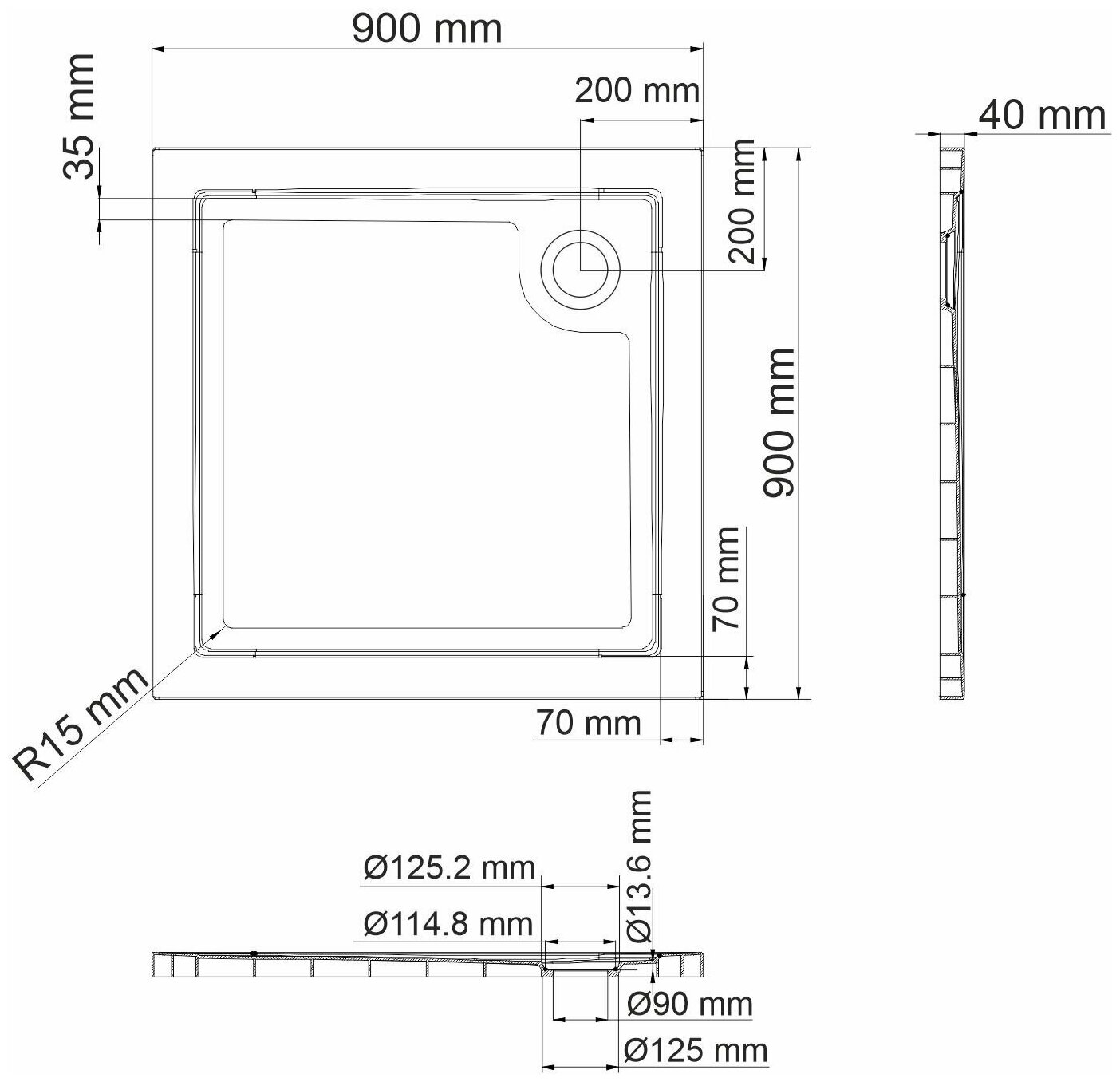 Душевой поддон WasserKRAFT Salm 27T03. 900*900*40 мм. SMC (стеклопластик). Цвет - белый. Выдерживают вес max. 1000 кг. В комплект входит сифон