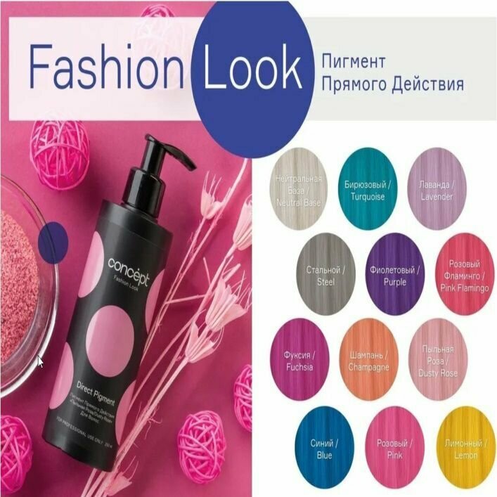 - Оттенки смешиваются между собой и продуктами Fashion Look для получения уникальных цветов