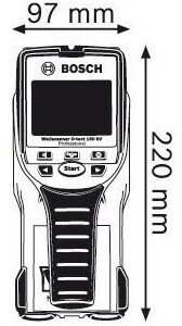 Давно мечтал о таком устройстве, в моей профессии просто незаменимая вещь. Профессиональный, на нескольких языках, с ярким, подсвечивающимся дисплеем. Определяет различные материалы (дерево, металл и пр.) на глубине до 150 мм, этого достаточно, чтоб безошибочно определить наличие данных материалов. Бош D-Tect 150 SV удобно держать в руке, он плотно прилегает к поверхности, сканирует с погрешностью до 5 мм.