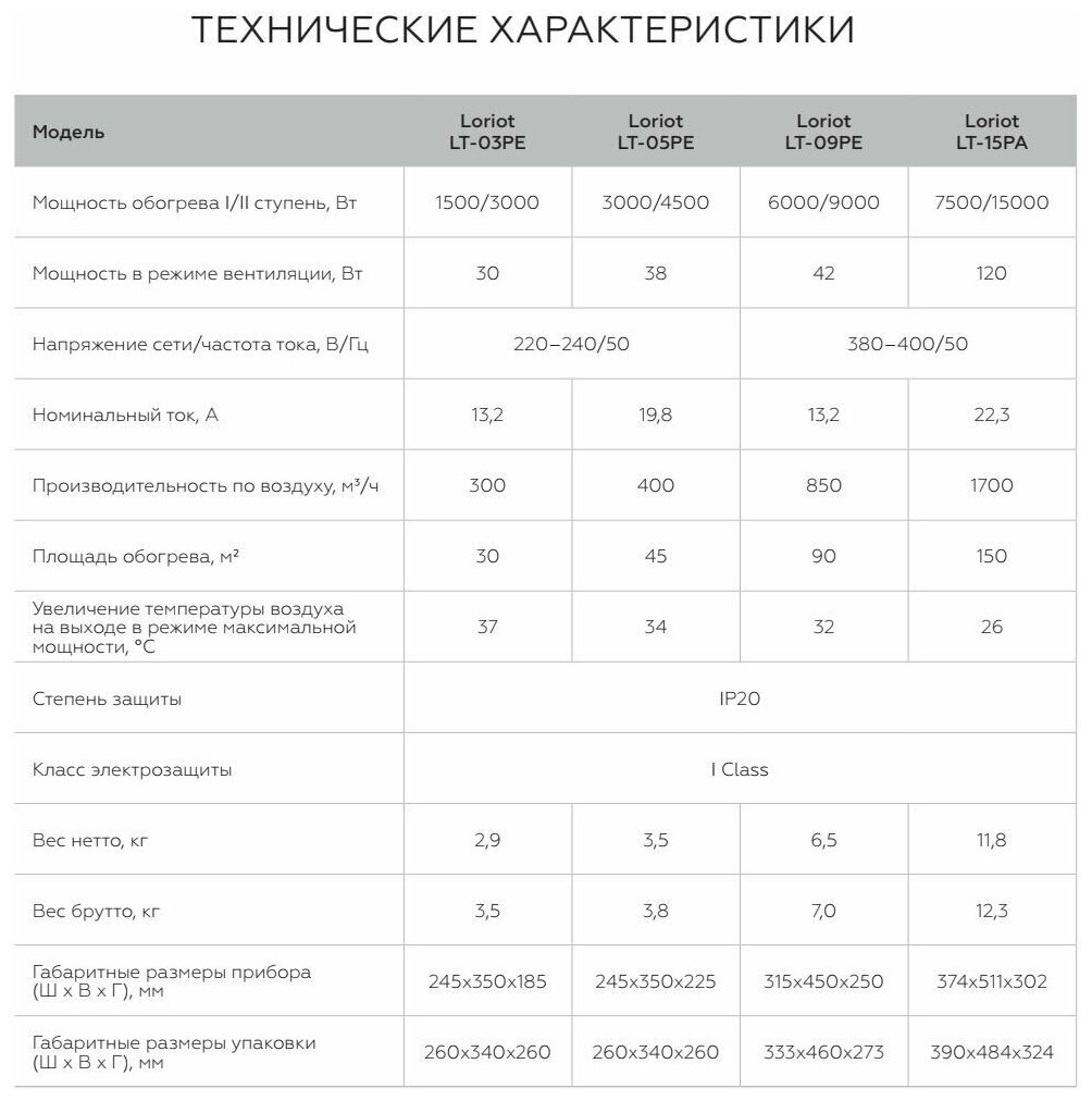 Тепловые пушки Loriot серии LT являются высокоэффективным и экономичным способом обогрева помещения. Эти обогреватели оборудованы ТЭНом, изготовленным из нержавеющей стали, которая отличается высокой износоустойчивостью и отлично переносит длительный нагрев до очень высоких температур. Имеющийся на корпусе этого прибора термостат позволяет регулировать тепловую мощность обогревателя и создавать наиболее комфортную температуру воздуха в обслуживаемом помещении.