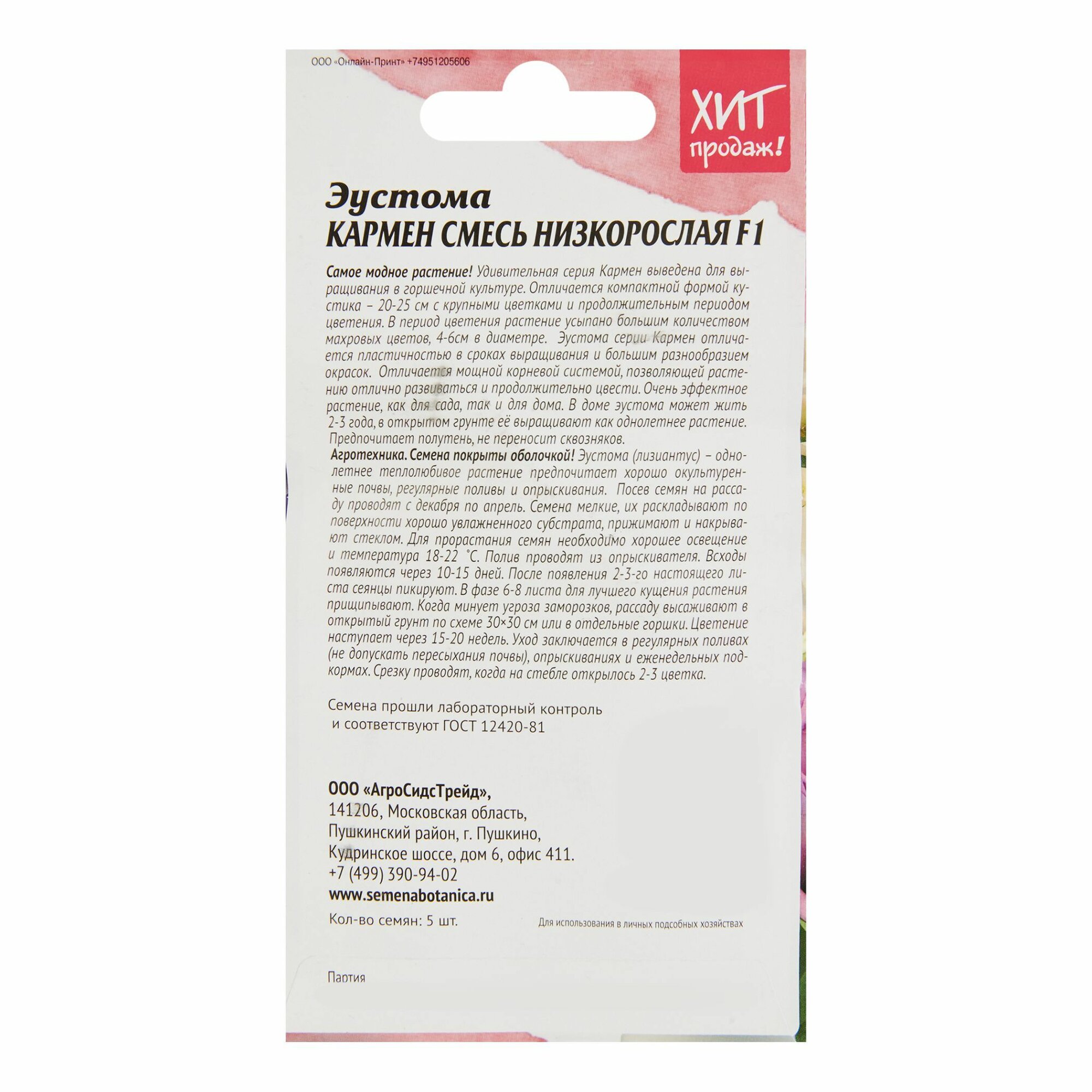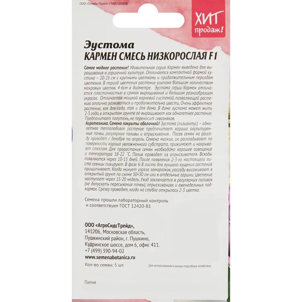 Семена эустома кармен смесь аст 5 шт Без бренда
