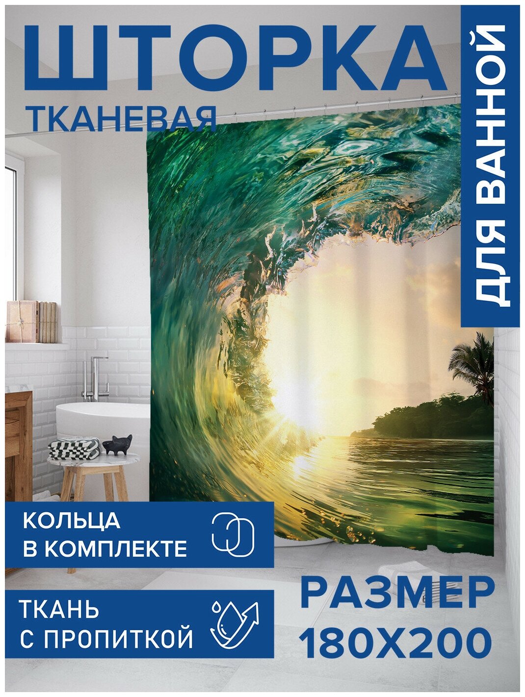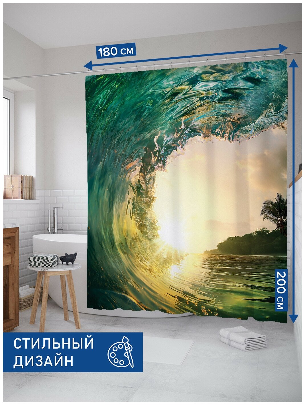 Шторка-занавеска для ванной JOYARTY Штора для ванной Волна накрывает 180х200 см