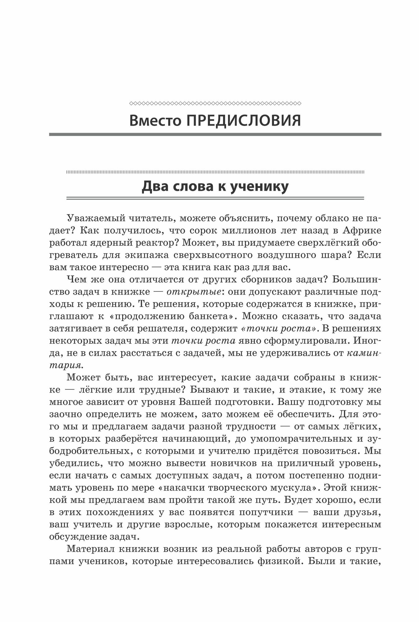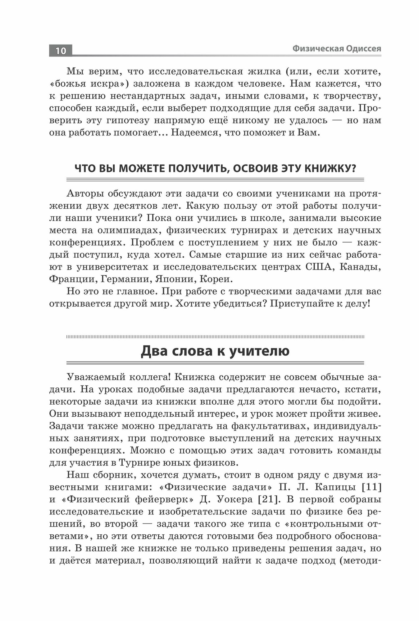 Книга содержит 143 увлекательные задачи для учеников 7-11 классов по всем разделам физики от задач с почти очевидными решениями до исследовательских проектов. Многие задачи публикуются впервые. Это открытые задачи, помогающие развитию творческих способностей. Использование этих задач заметно повышает мотивацию учеников. Материалы книги позволяют проводить занимательные конкурсы в школе, городе, регионе.