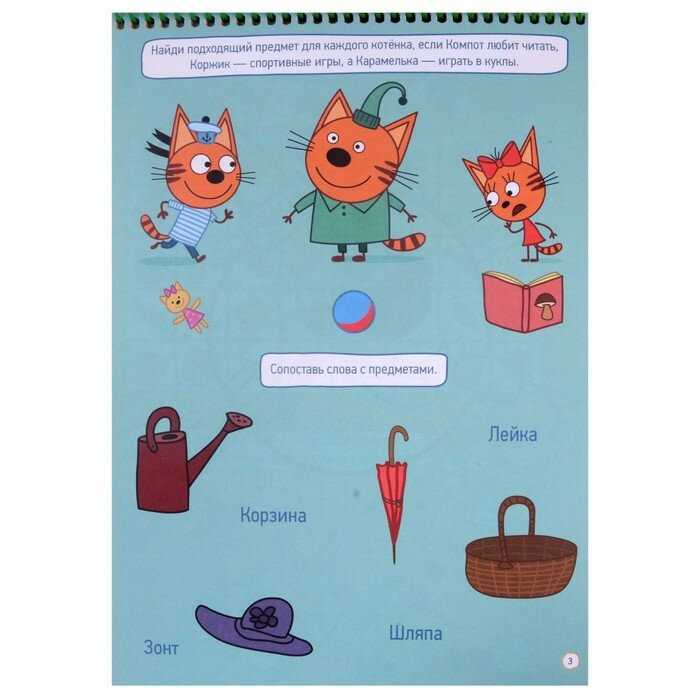 хороший блокнот, брала на подарок, имениннику понравился. включает в себя красочные картинки с любимыми персонажами, есть и задания с нахождением отличий, и раскраски, и соединение по точкам. в общем, ребенка займет надолго. могу порекомендовать, если любите мультфильм три кота
