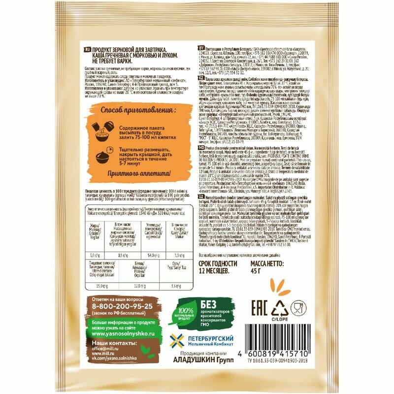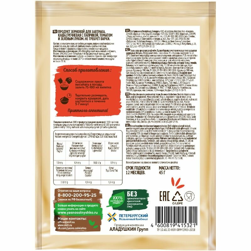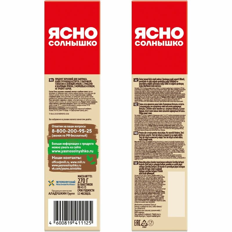 Каша Ясно солнышко Гречневая Ассорти 6пак*45г Петербургский мельничный комбинат