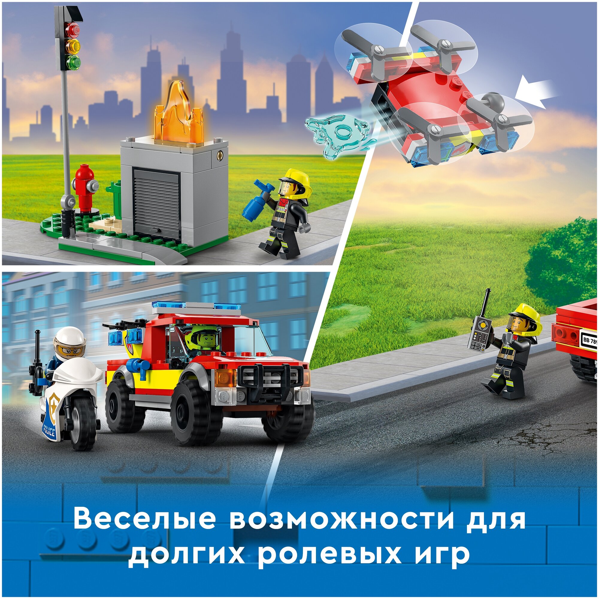 Увлекательный игровой набор для пожарных и полицейских, вдохновляющий детей и поклонников сериала LEGO® City Adventures.