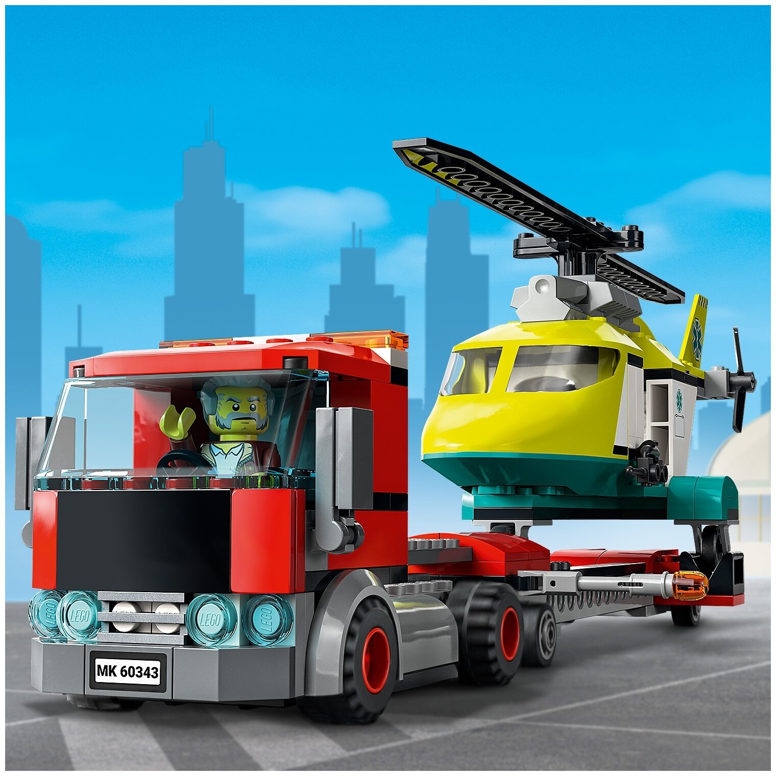 В игровой набор «Грузовик для спасательного вертолёта» LEGO City (60343) входит крутой красный грузовик с платформой-прицепом на шарнире и сигнальными огнями, а также игрушечный спасательный вертолет. Просто добавьте минифигурки водителя и пилота и немного воображения, чтобы много часов провести за игрой.