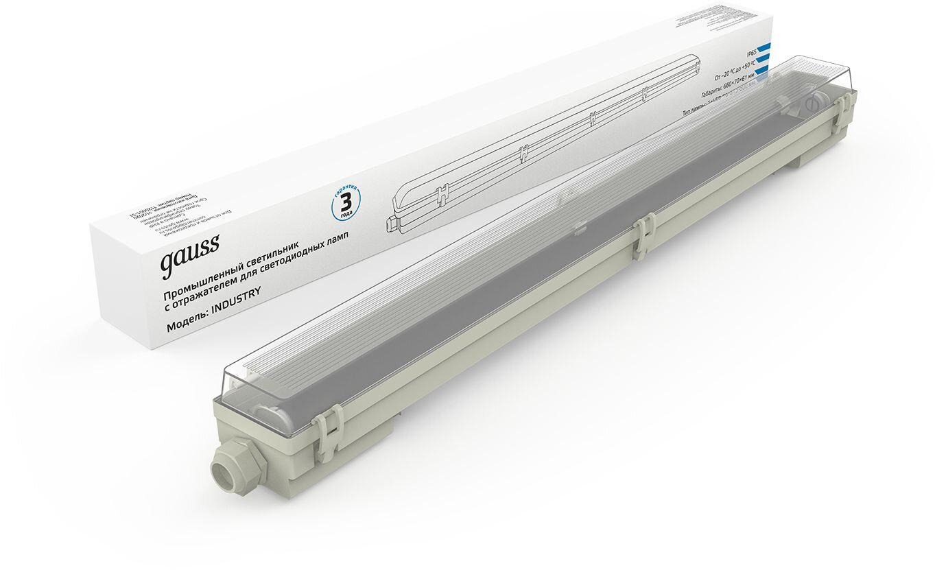 Светильник Gauss линейный СПП-Т8-G13 Industry для LED ламп 1х600 мм 660х70х61 мм