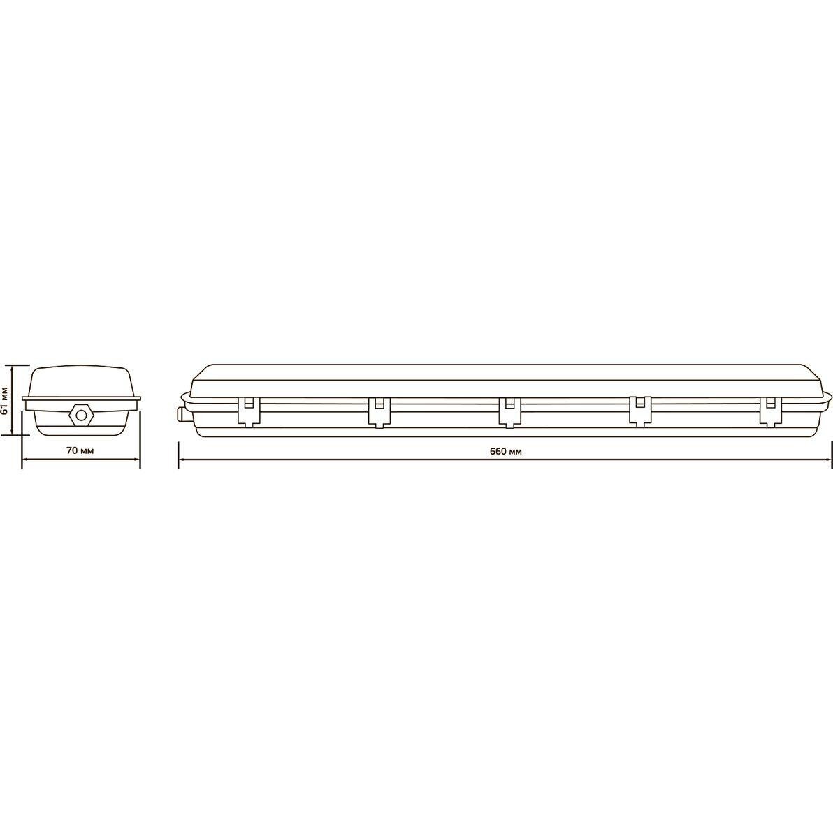 Модель: линейный СПП-Т8-G13 Industry для LED ламп 1х600 мм 660х70х61 мм