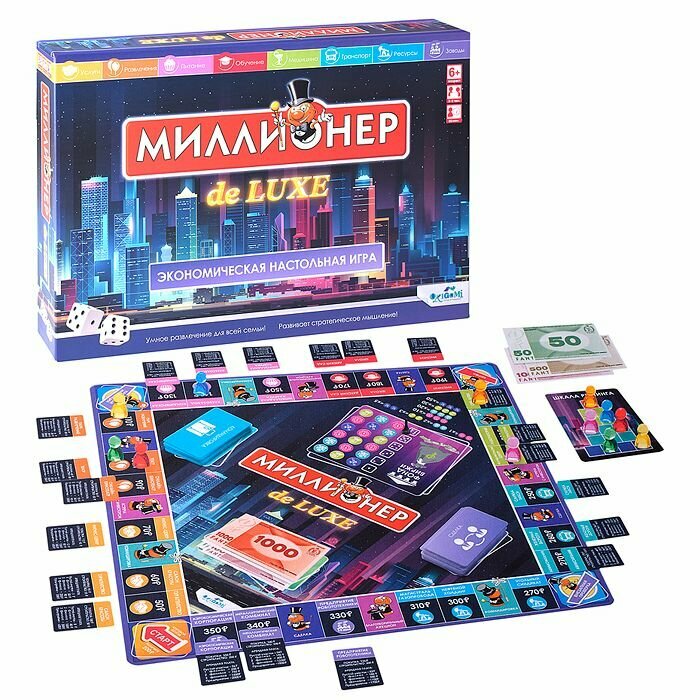 Экономическая игра "Миллионер-делюкс" - отличная возможность научиться разбираться в мире бизнеса , завоёвывать доверие клиента своими личными качествами, играя , ребёнок получает возможность пройти путь от менеджера до генерального директора компании. Проведите время с семьей за увлекательной игрой!