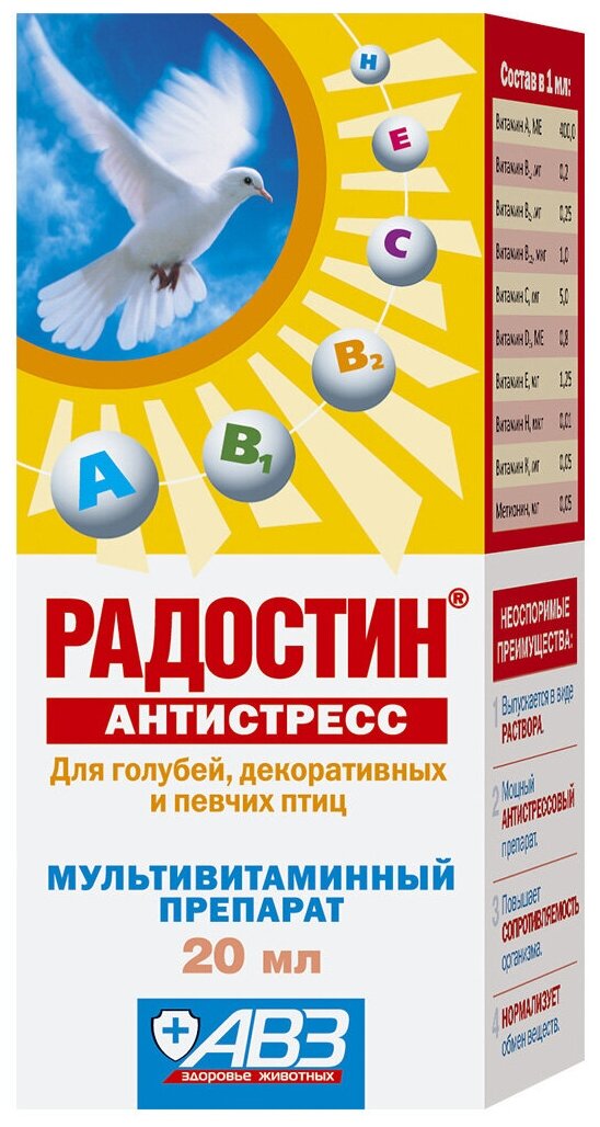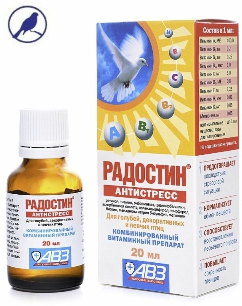 Радостин антистресс мультивитаминный комплекс для декоративных и певчих птиц 20 мл ООО НВЦ Агроветзащита С.-П. (1473122)