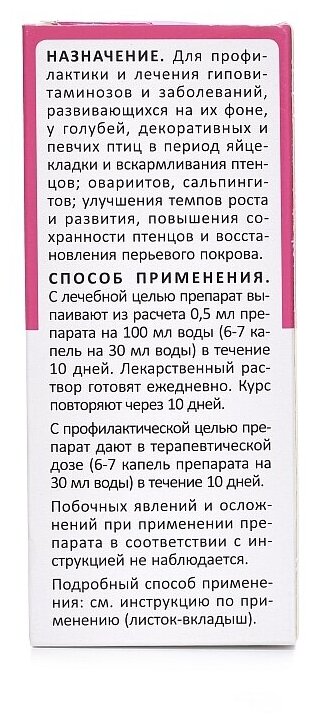 | Особенности/назначение | Для иммунитета, Для улучшения перьевого покрова, Профилактика |