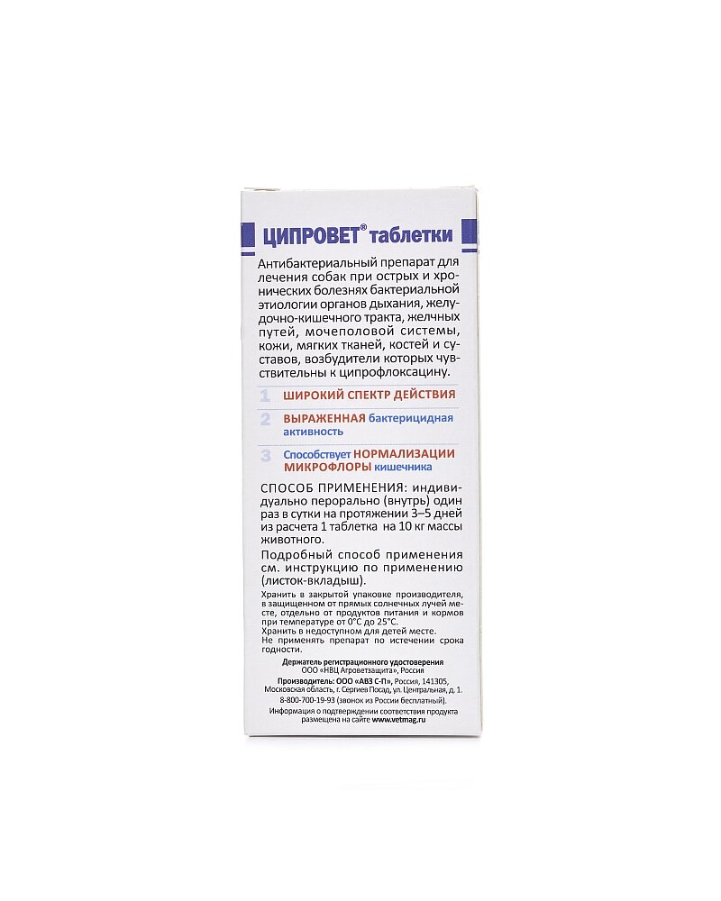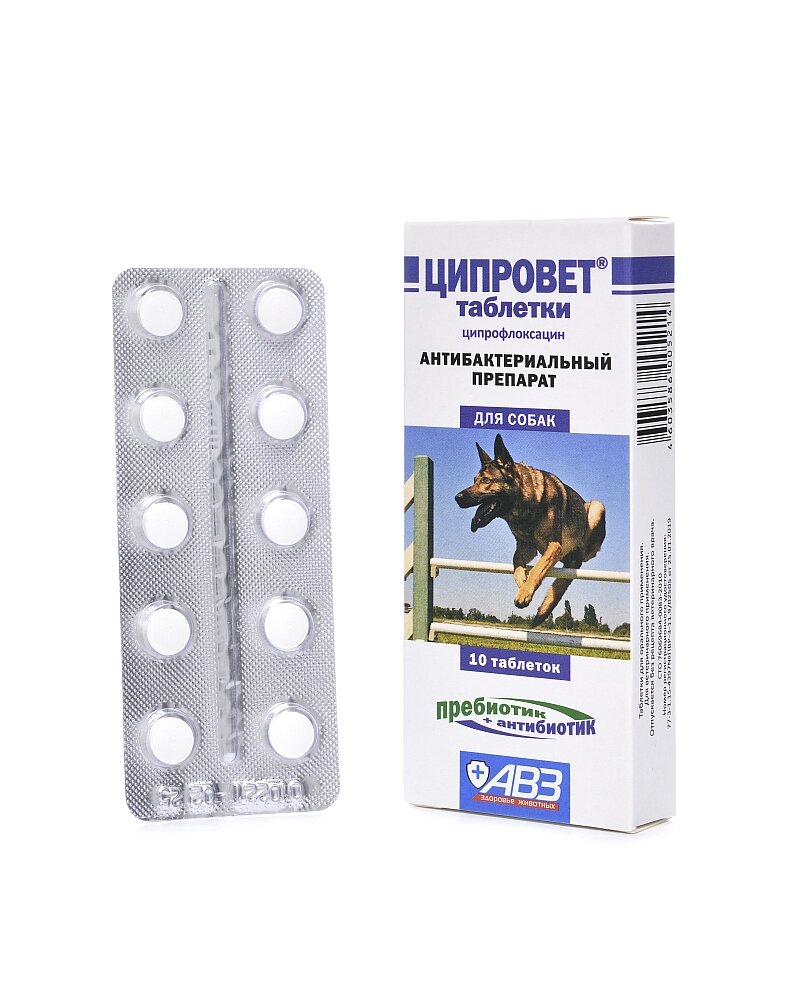 Ципровет антибактериальный препарат для крупных и средних собак. 1 таб./10кг таб. 10шт ООО НВЦ Агроветзащита С.-П. (1473122)