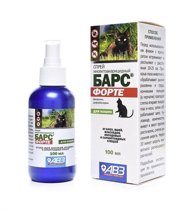 Барс форте спрей инсектоакарицидный для кошек на основе фипронила 100мл ООО НВЦ Агроветзащита С.-П. (1473122)
